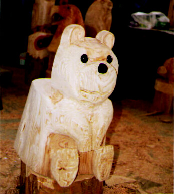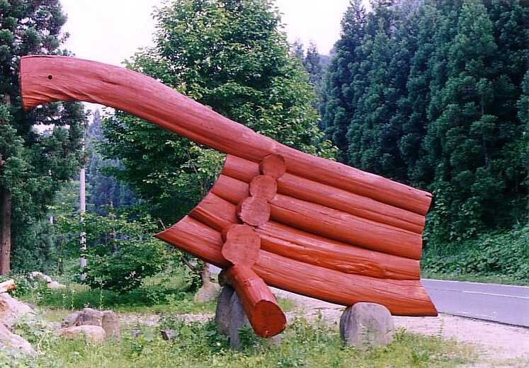 丸太の創作看板 丸太組みの迫力が目を引きます。 |