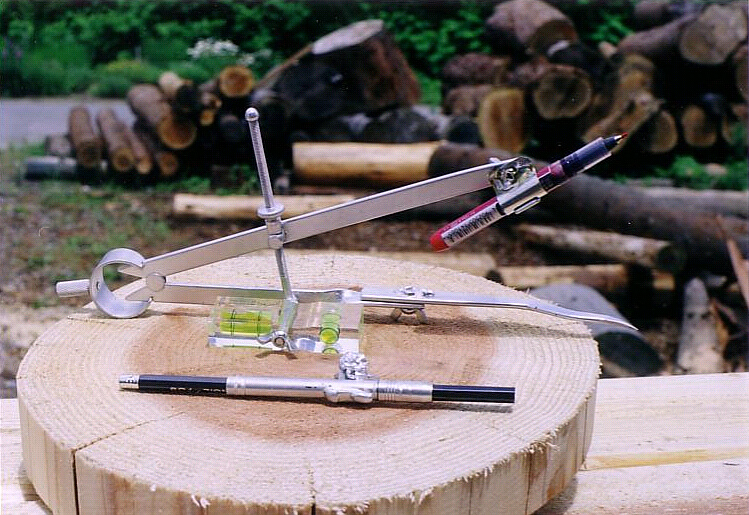 | スクライバー 重ねる丸太のラインを上の丸太に写す道具。 これを使いこなせば、すき間無く組み上げが できます。 |